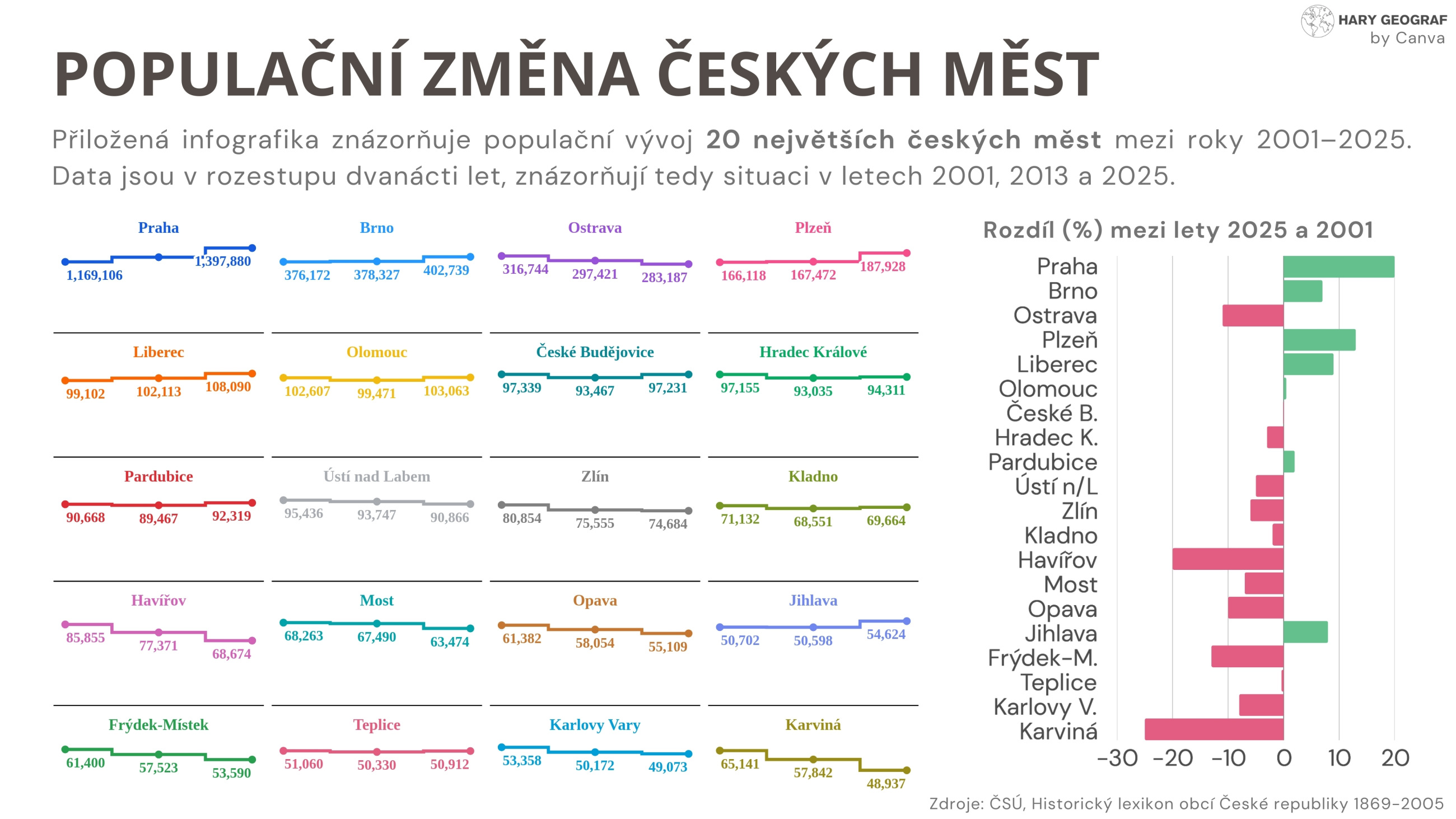 Populační změna českých měst