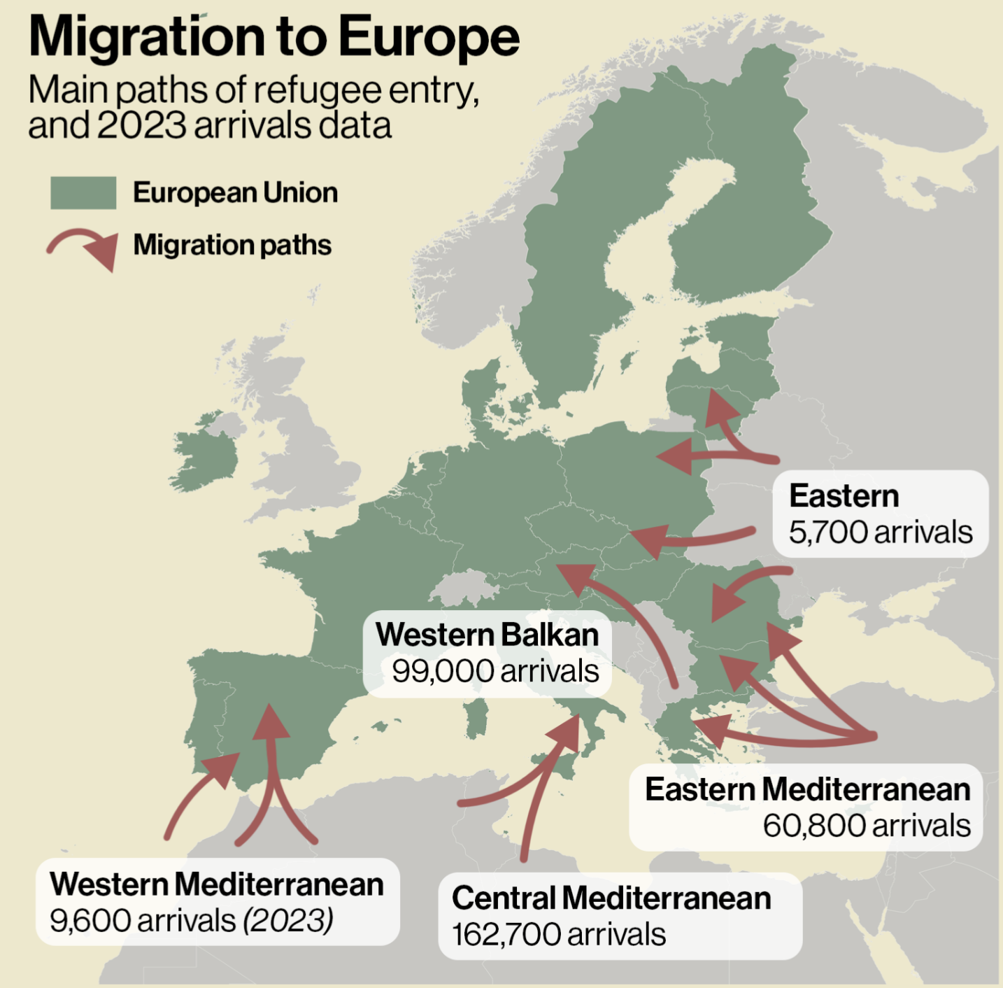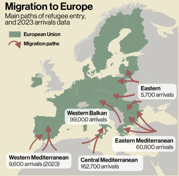 Migrační tahy do Evropy v roce 2023.