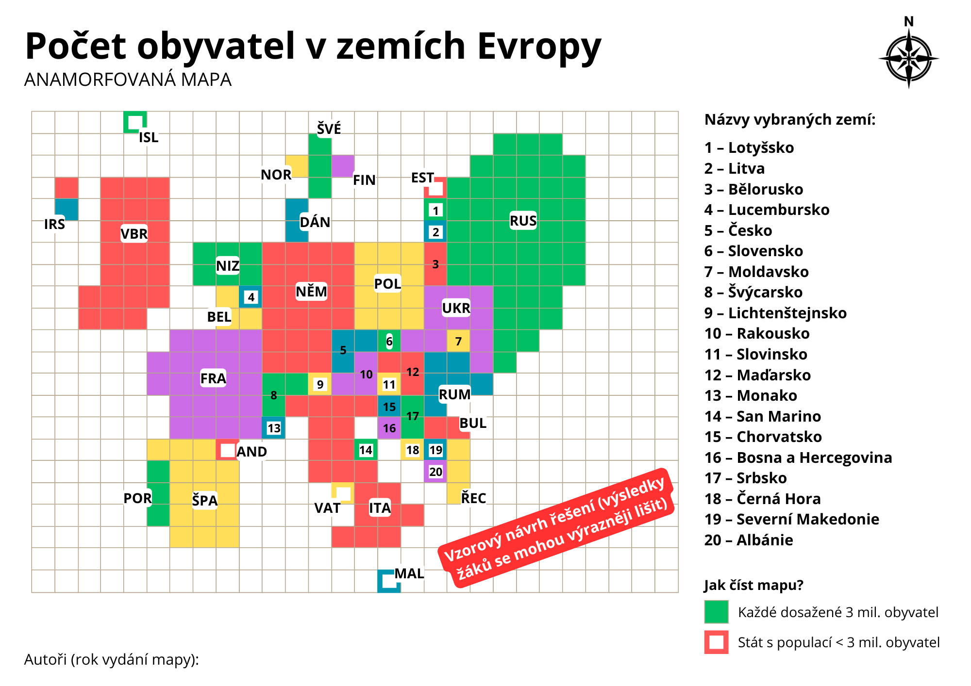 Jak toho docílit? Je to vlastně hrozně jednoduché. Pojďte si takto s žáky zpracovat anamorfovanou mapu Počtu obyvatel v zemích Evropy.